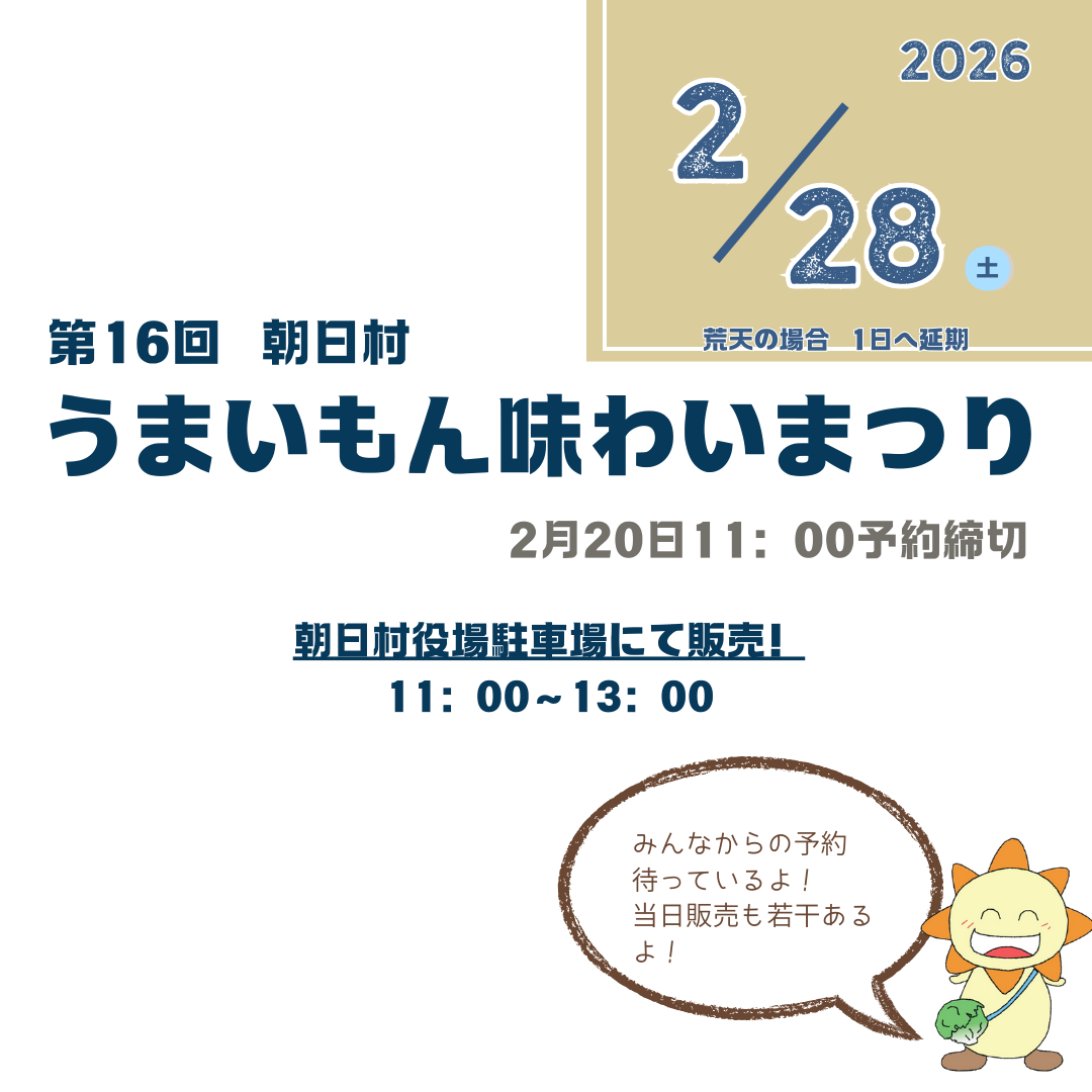 今回も朝日村のうまいもん、そして縁のある産地よりうまいもんをお取り寄せし販売を行います!
